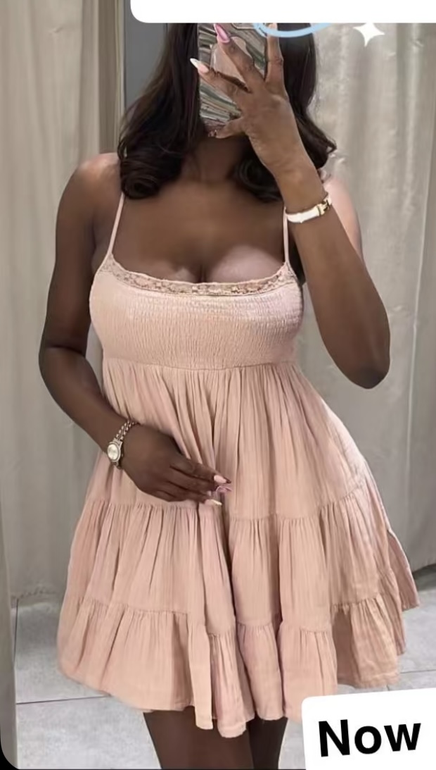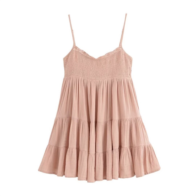 This light rustic rose babydoll dress features a charming and breezy design, perfect for a casual, stylish look.