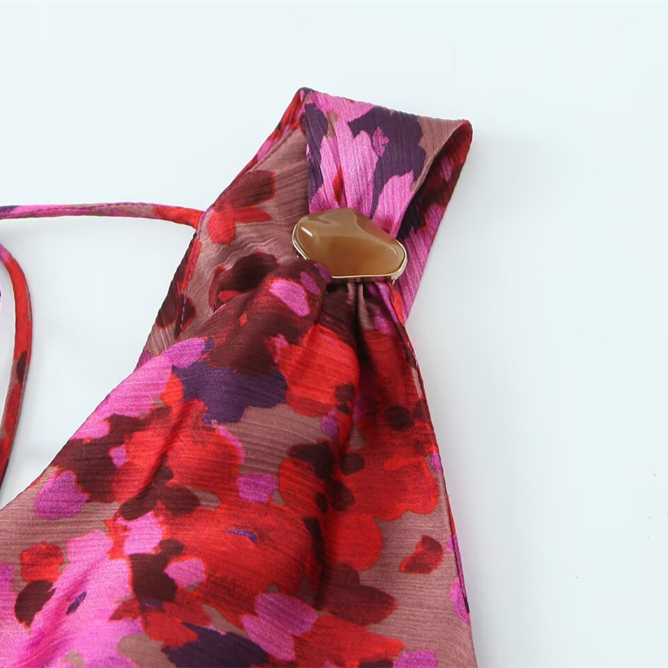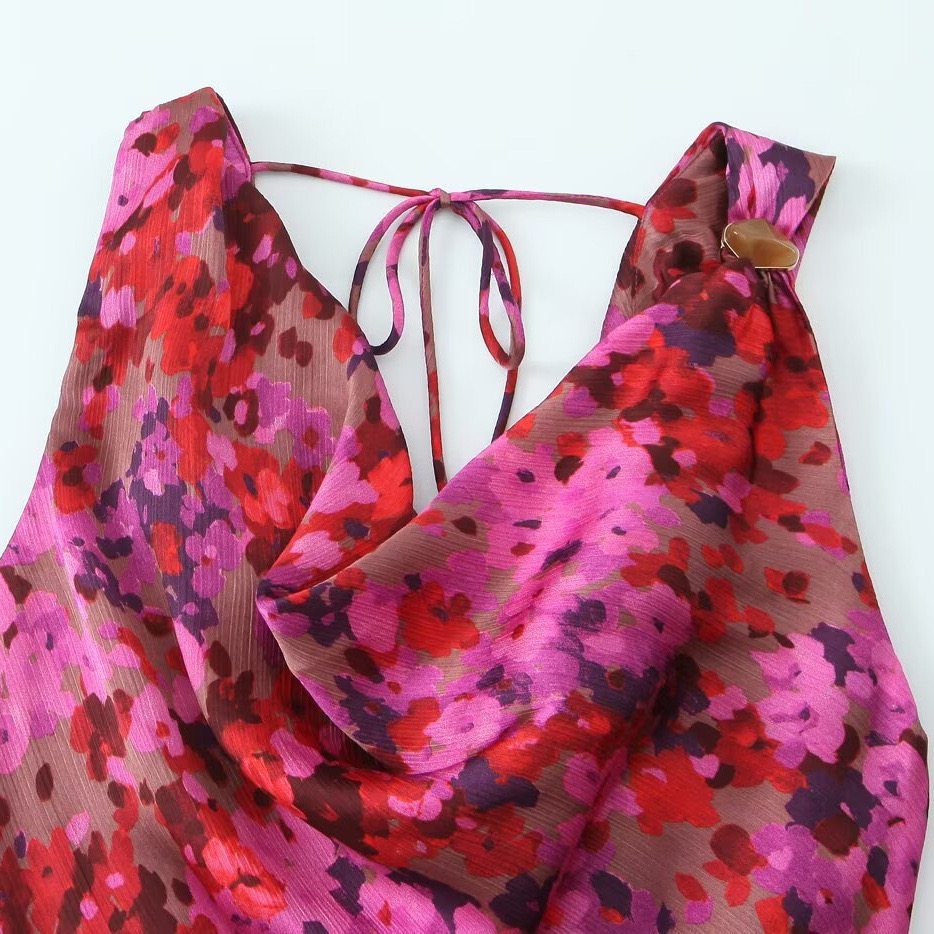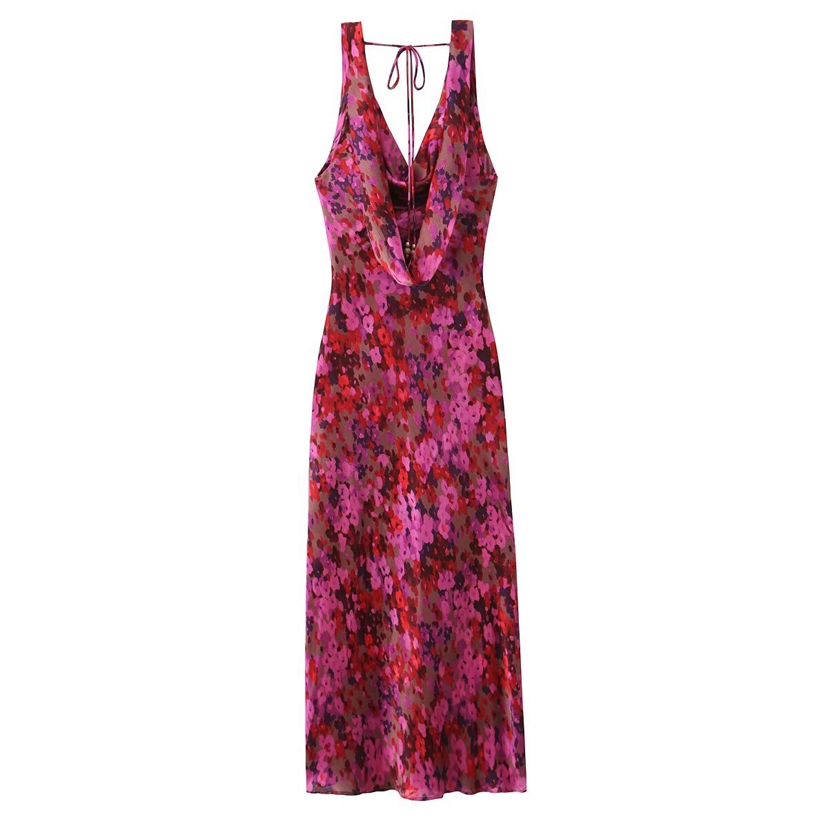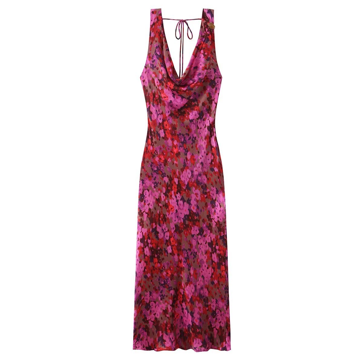 Designed with a loose, draping fit that flatters without clinging, this silky floral maxi glides over the body with every step. The cowl neckline adds a soft feminine touch, while the open tie-back detail keeps things flirty from behind.